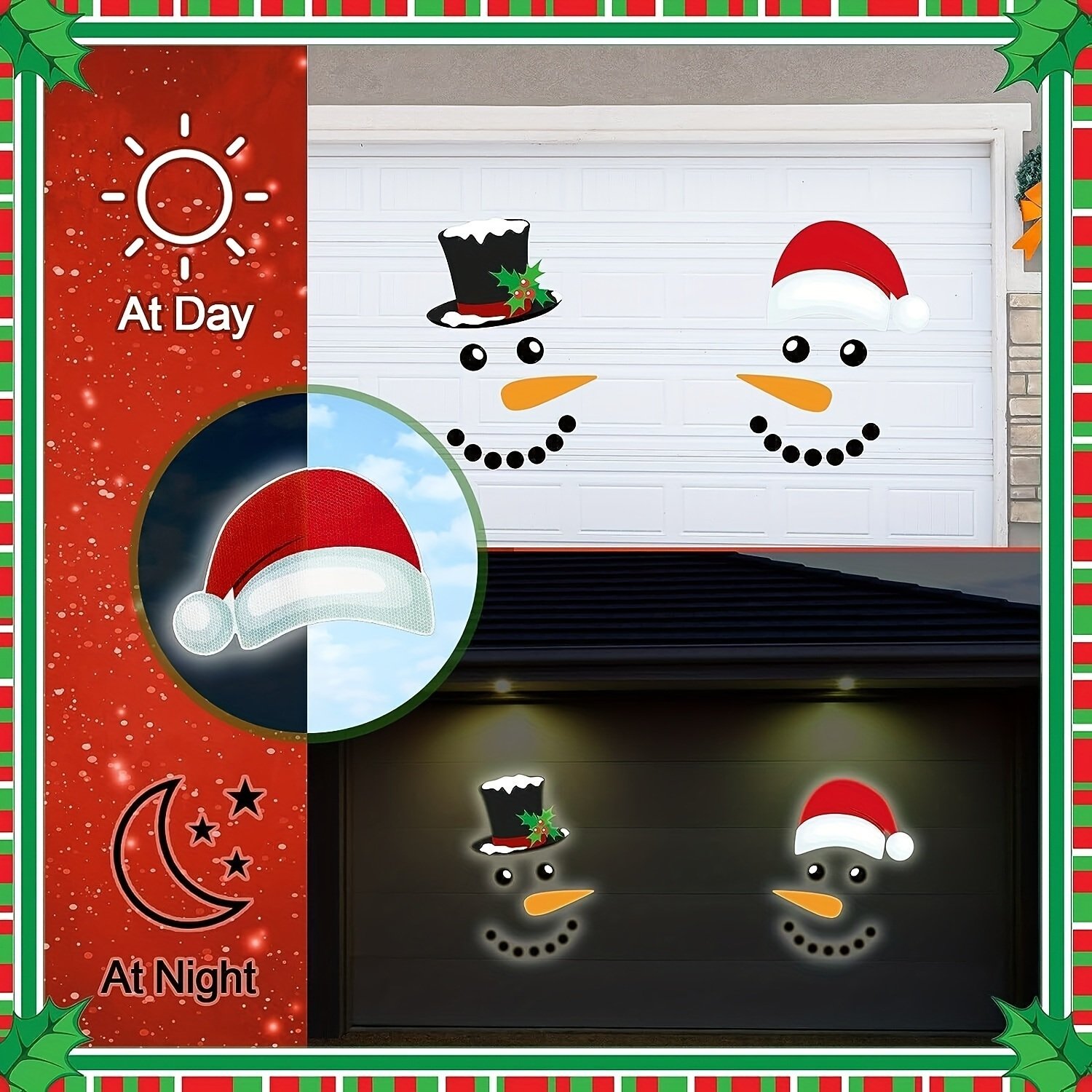 Home > 1 Set, Magnet Sticker, Merry Christmas Decorative Garage Door Decorative Snowman Magnet Sticker, Refrigerator Snowman Face Garage Sticker Set, Reflect