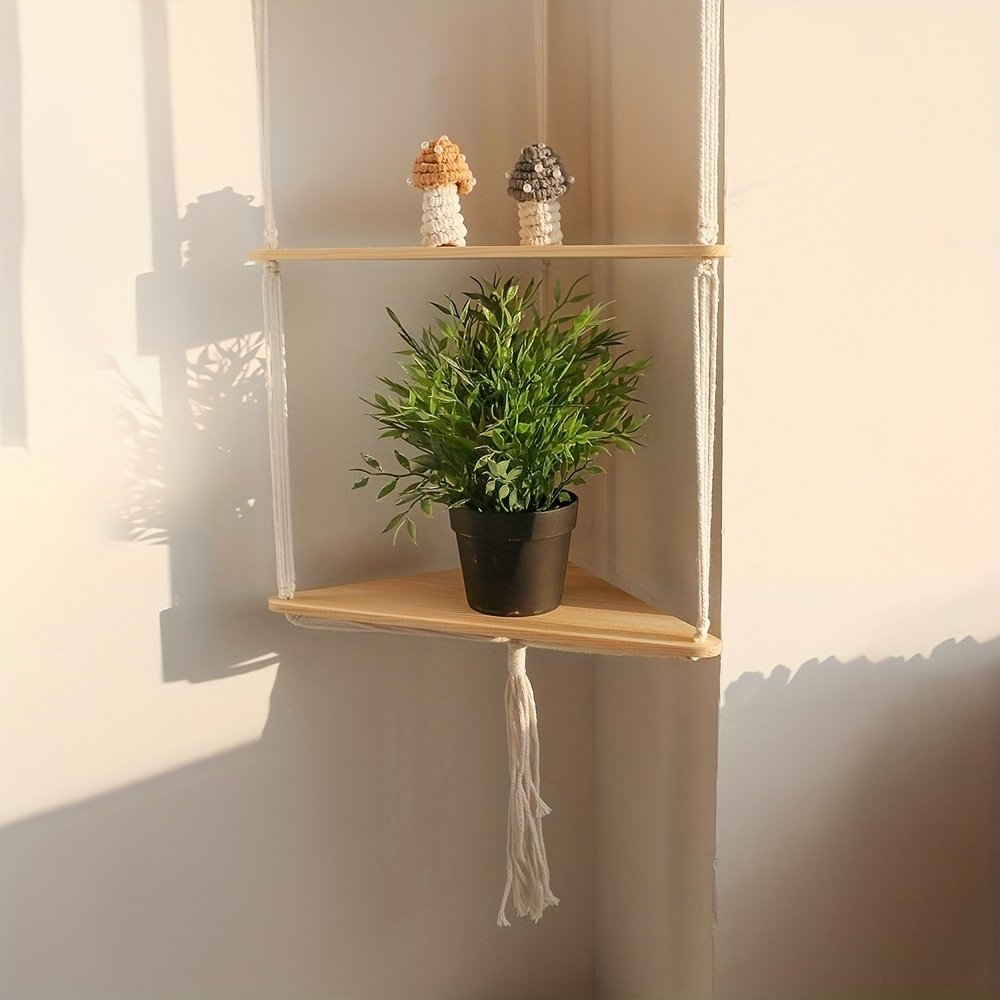 Home > 1pc,Boho Triangle Shelves Wall Decor - Plant Hanger, Candle Holder, and Home Decor for Living Room and Bedroom