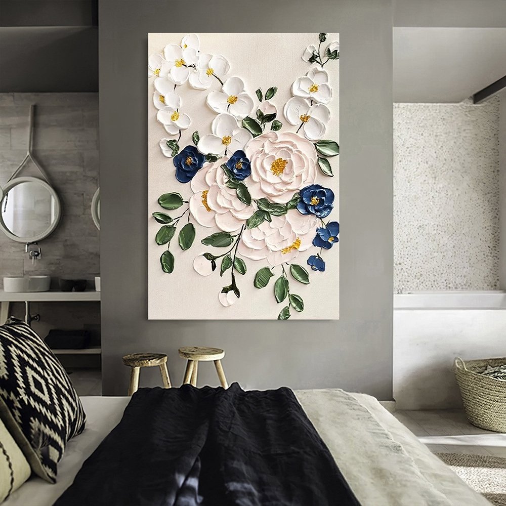 Hand Painted Oil Paintings Large Original Oil Painting White Flower Decor Abstract Wall Art Hand Paint Palette Knife Painting Heavy Textured Painting