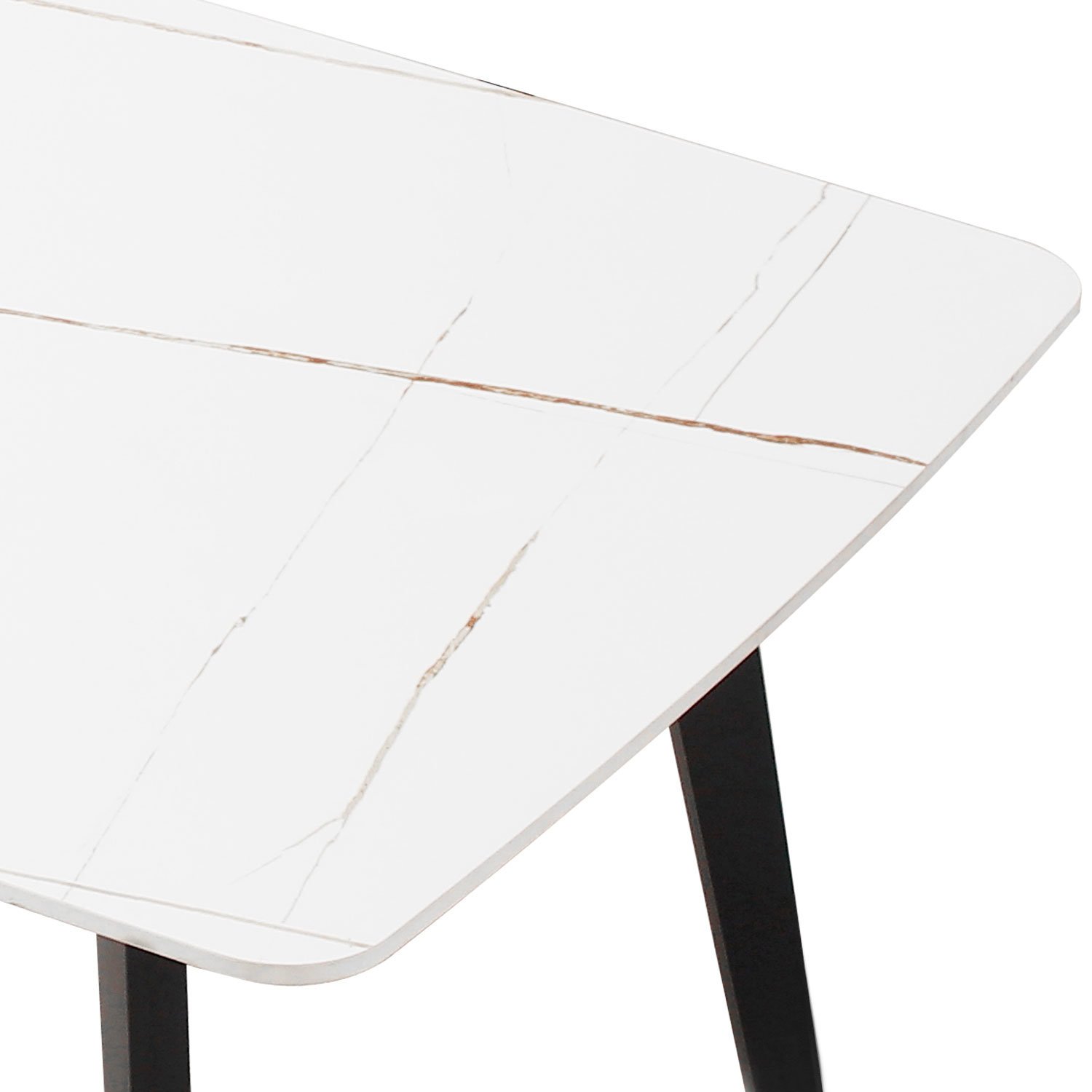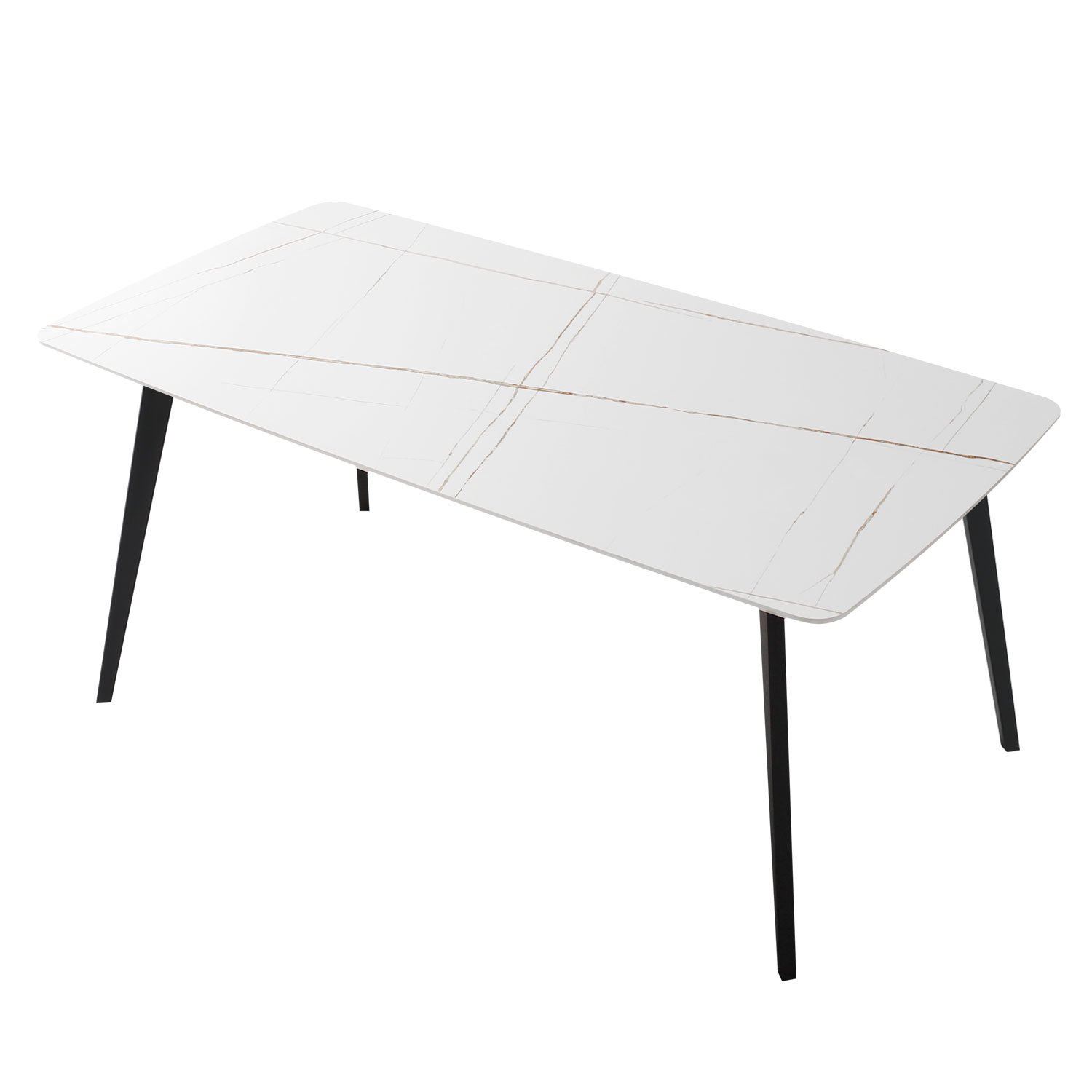 J3710 Porcelain Dining Table White 70"This dining table equipped with big table top. Suitable for 4-8 person at the same time. Not only as dining kitchen table, it can also be display table, large coffee table, presentation table, etc. A good choice for family meeting or parties. The desktop board is made of 12mm thickness porcelain and metal legs for non-toxic and environment protection, this dining table will support long-term use. It's stable and durable, brings mid-century and industrial style to your room Easy to Setup & Clean: With full set of screws and tools and instruction, it is easy to assemble, just need to take 5-10 minutes. Smooth table top can be quick cleaned with a damp cloth. Put the screws in loosely until all pieces are together and then go back and tighten them all.