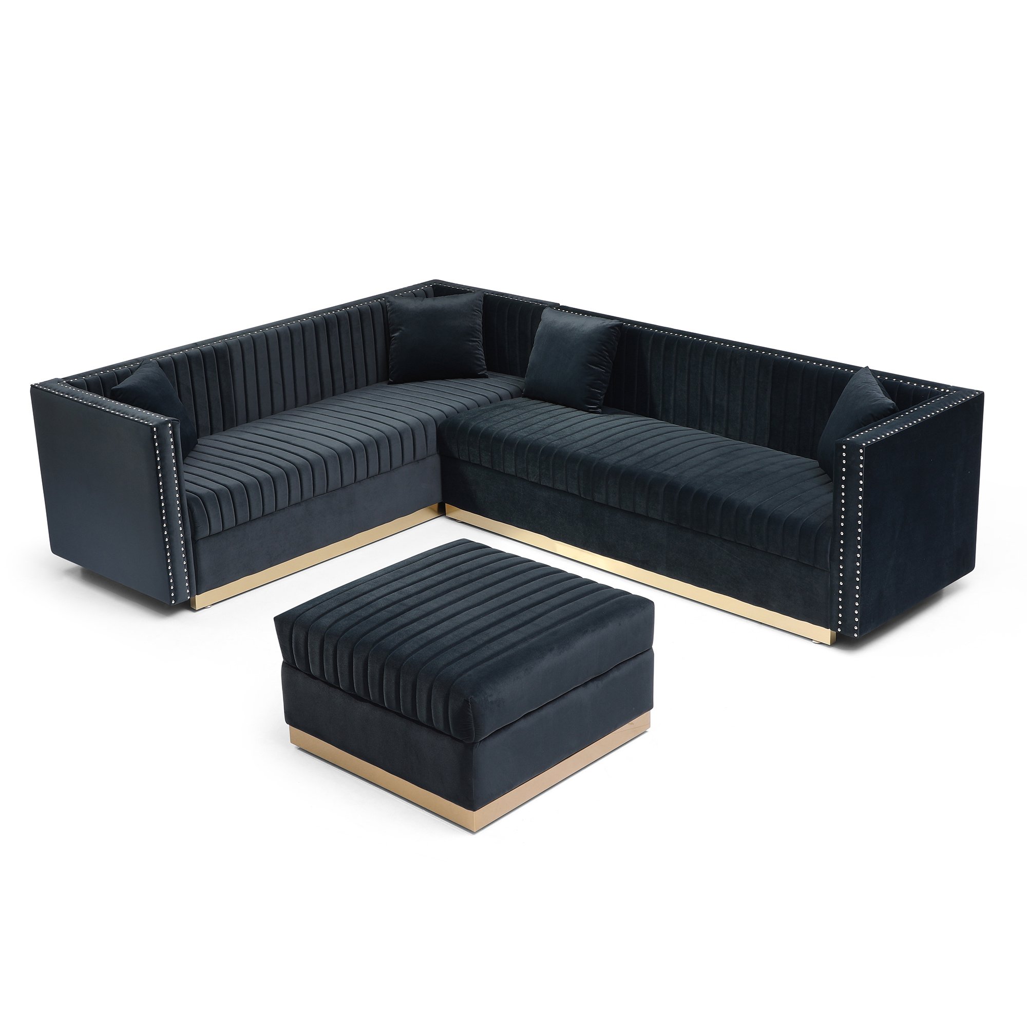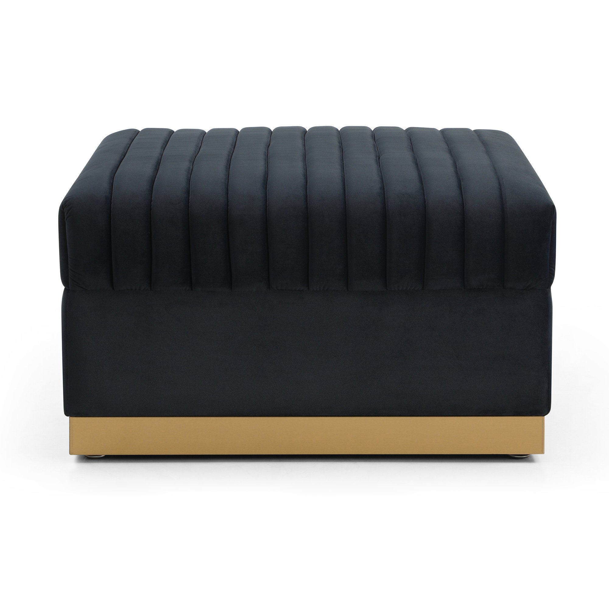 Contemporary Vertical Channel Tufted Velvet Big Size Ottoman Modern Upholstered Foot Rest for Living Room Apartment,Black