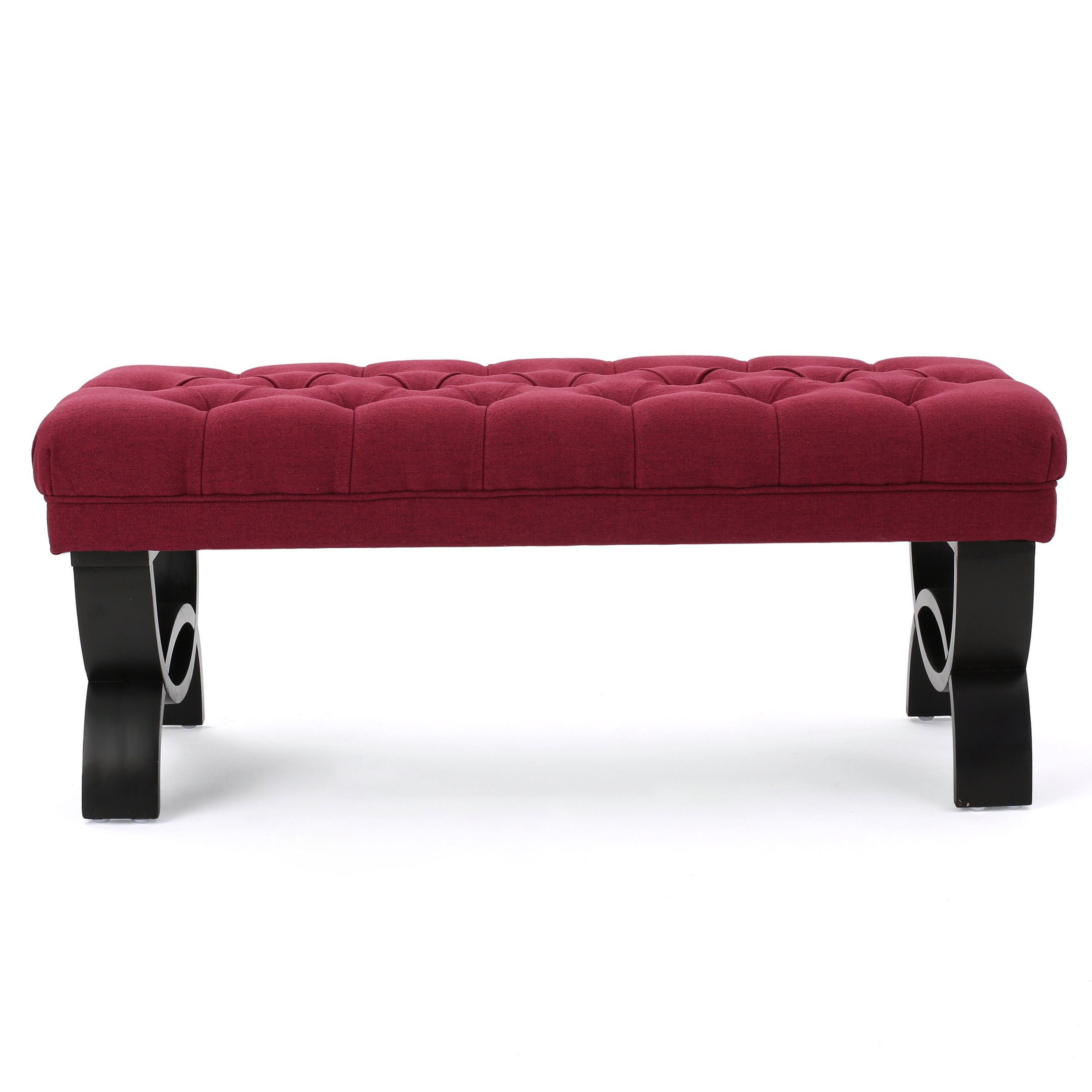 Our sleek ottoman bench gives any interior space a luxurious regal touch with its classic button tufting, diamond stitching, and exquisitely modern half-circle legs.