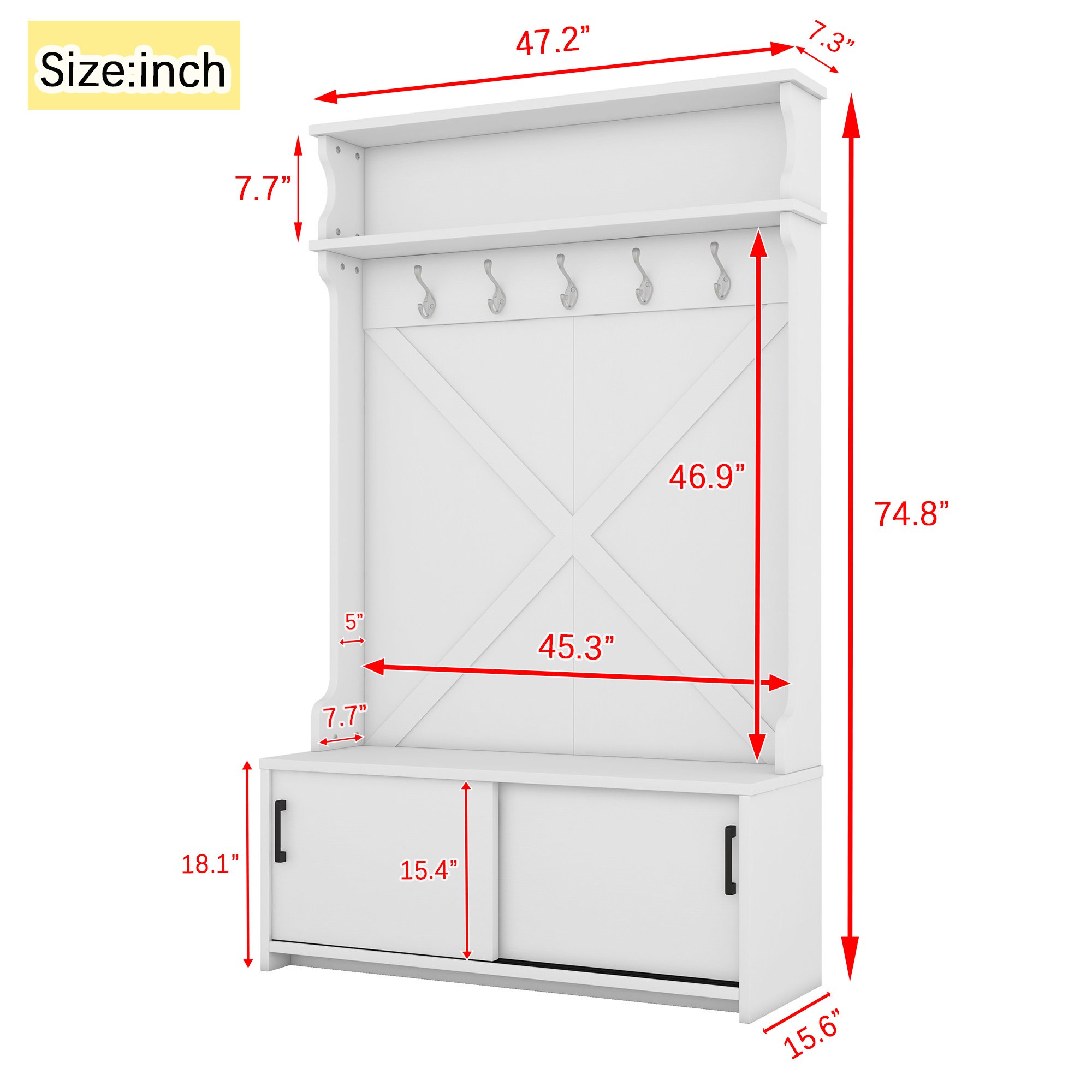 Stable and durable: Made of MDF and particleboard, this hall tree comes with quality hardware to ensure long-lasting use. In addition, the hall tree is equipped with an anti-tipping device to ensure safety.