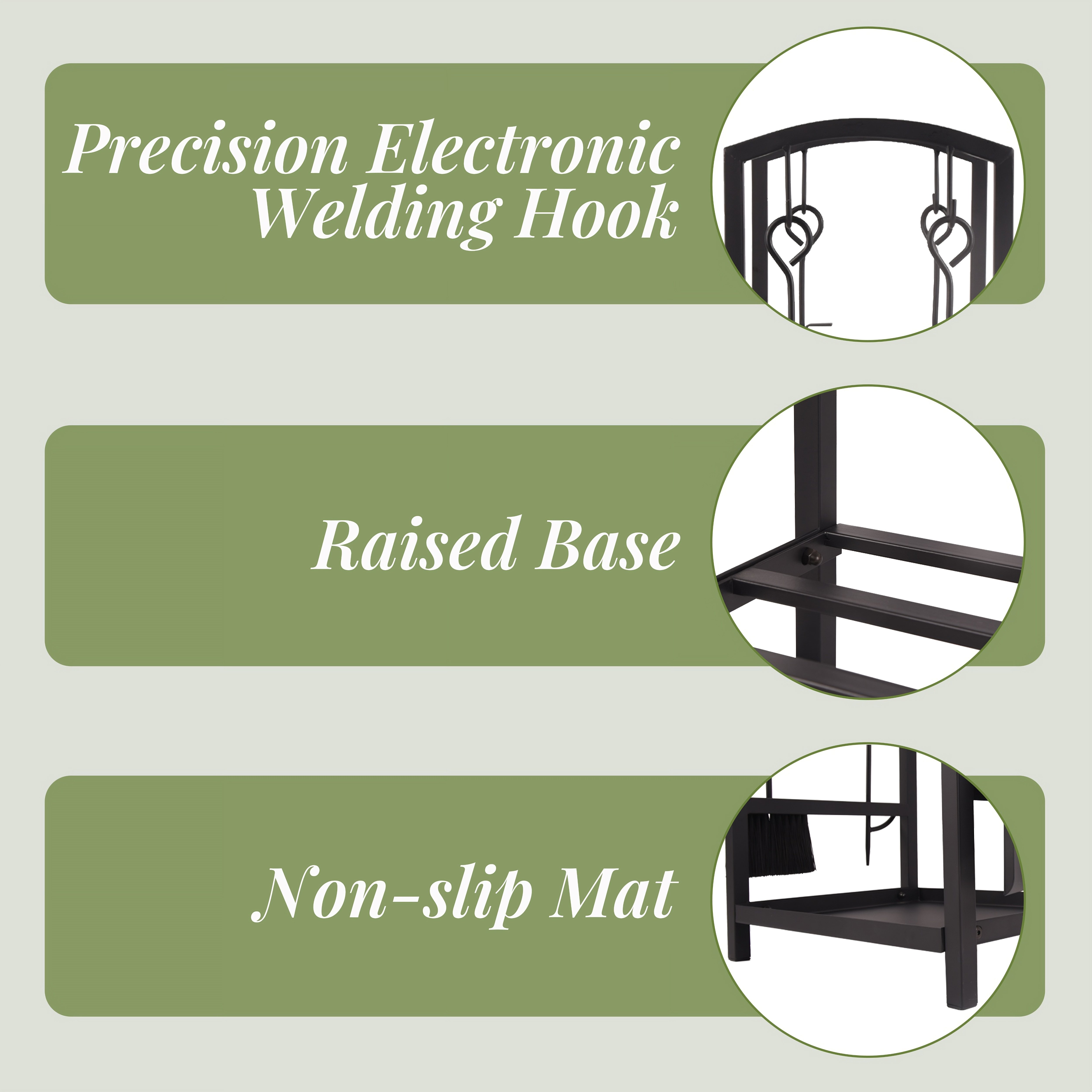 2.Set: firewood stand with hook, broom, shovel, tongs. Easy to clean and move.
