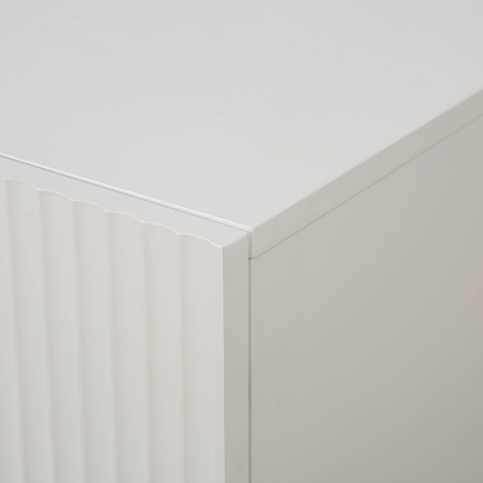 Modern Simple & Light Luxury Style:The design of this cabinet combines the features of modern simplicity and light luxury. Straight line; neat and smooth shape; simple lines; no many decorative elements; and pay attention to practicality. The pinstripe design on the door panel is elegant and understated; and the gold metal legs reflect the texture; in line with the characteristics of the light luxury style.