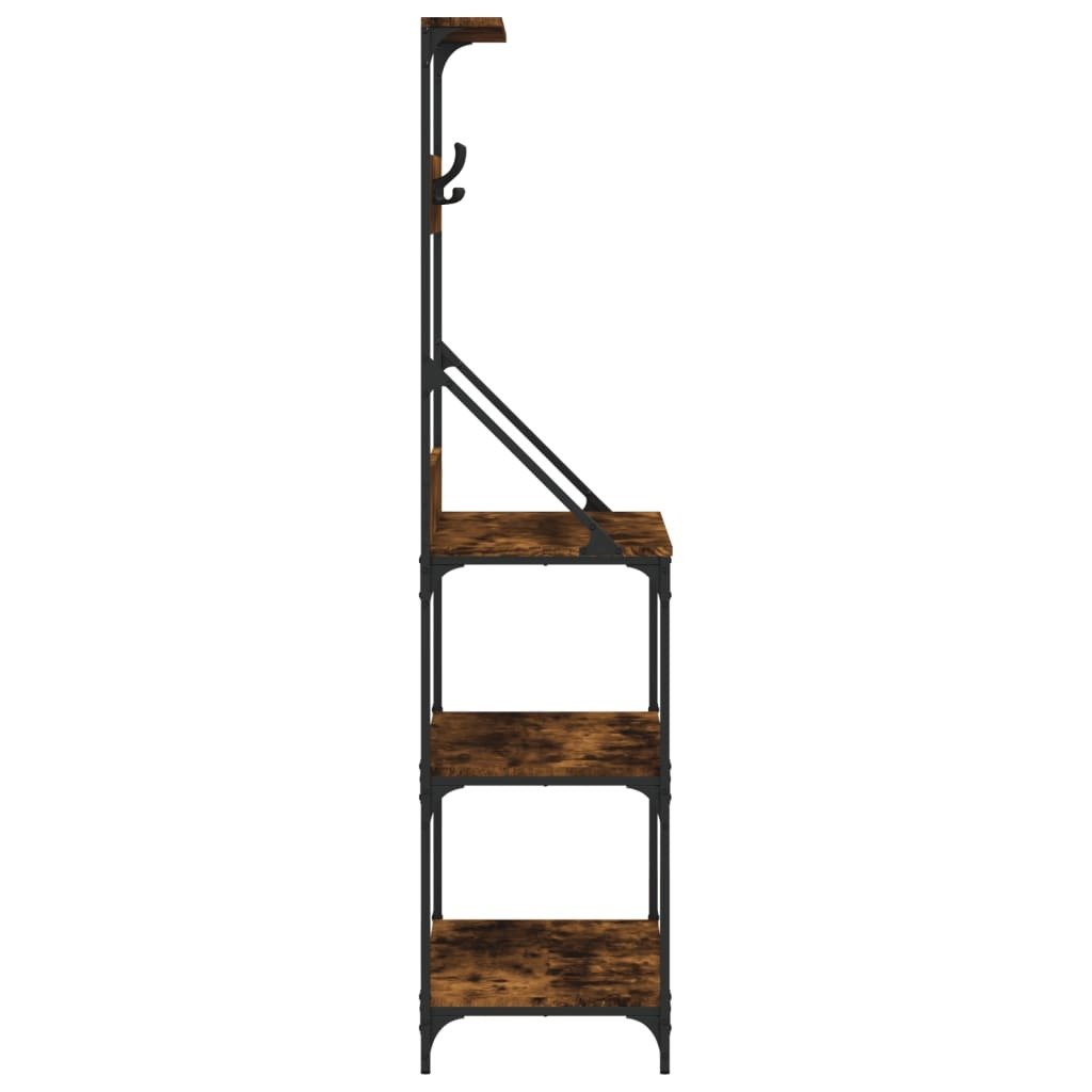 Baker's Rack with Hooks 4-Tier Smoked Oak Engineered Wood