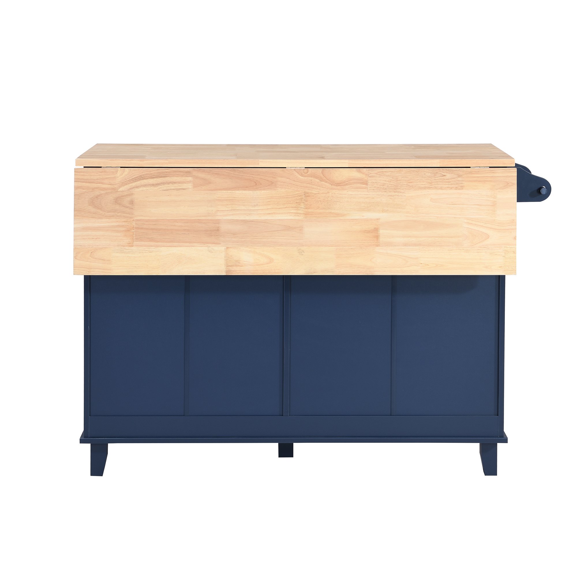 TOPMAX Farmhouse Kitchen Island Set with Drop Leaf and 2 Seatings,Dining Table Set with Storage Cabinet, Drawers and Towel Rack, Blue+Black+Brown