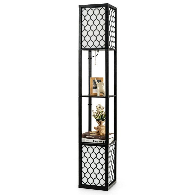 1.2-in-1 Multifunctional Floor Lamp: Designed with two lamps and two storage shelves, this shelf floor lamp perfectly combines the lighting and storing function, much saving your room space. And the elegant black surface with modern style makes it a wonderful addition to your living space.