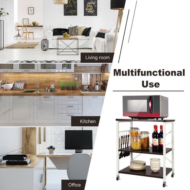 Home > Kitchen Helper Oven Storage Cart 3-Tier Kitchen Baker's Rack With Hooks