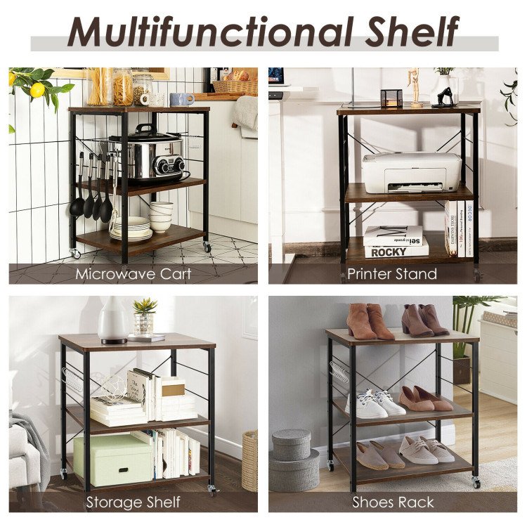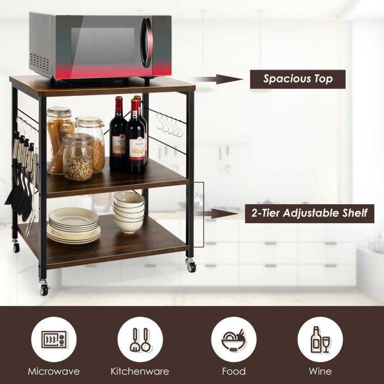 Home > Kitchen Helper Oven Storage Cart 3-Tier Kitchen Baker's Rack With Hooks