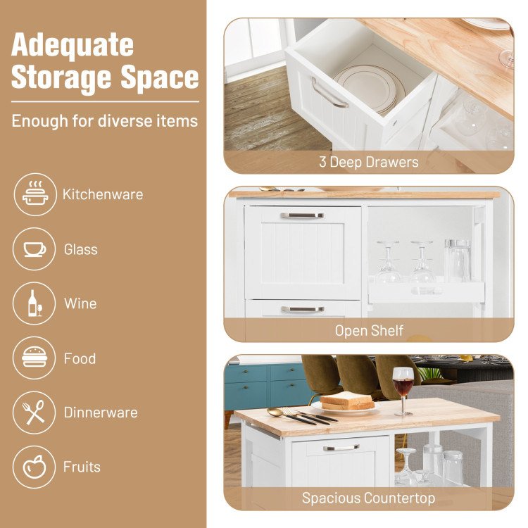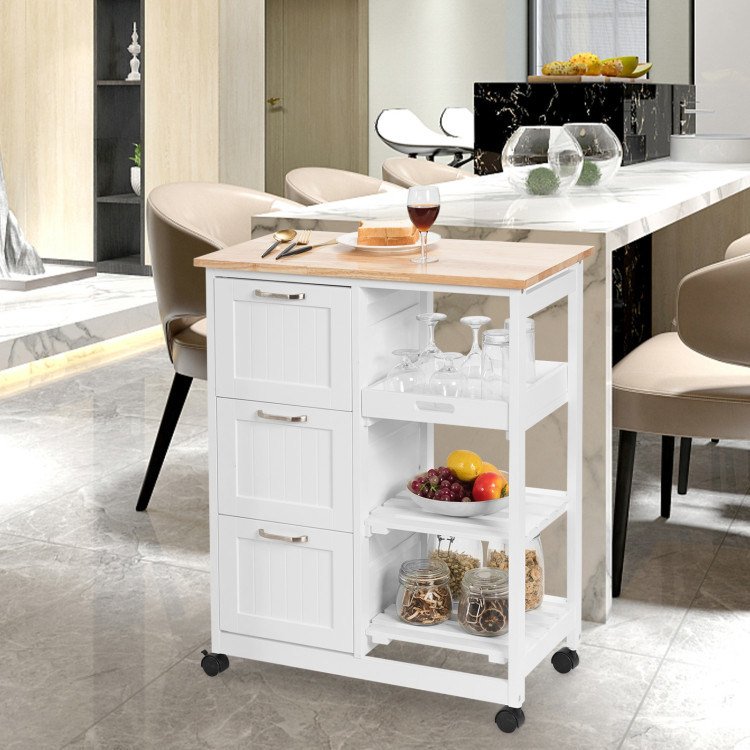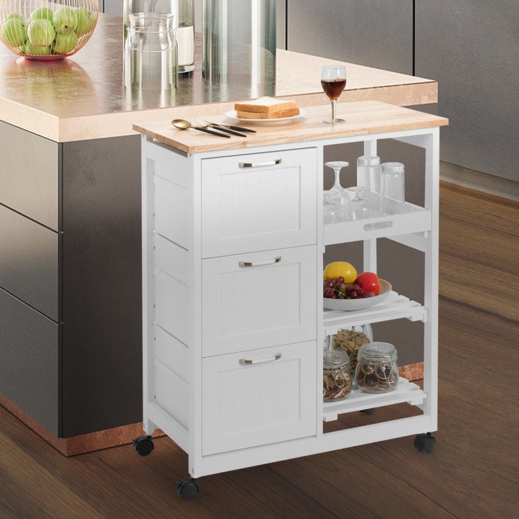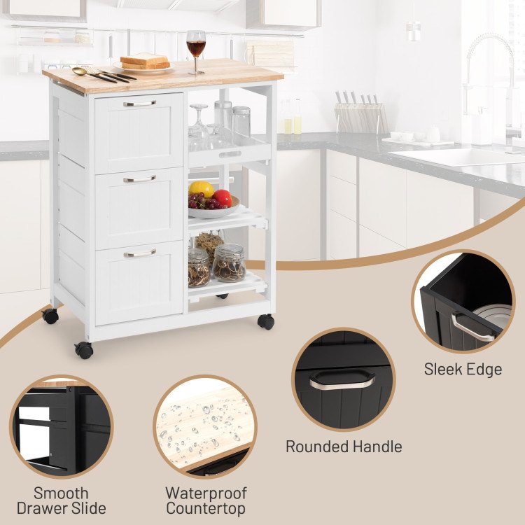 Rolling Kitchen Island Utility Storage Cart with 3 Large Drawers