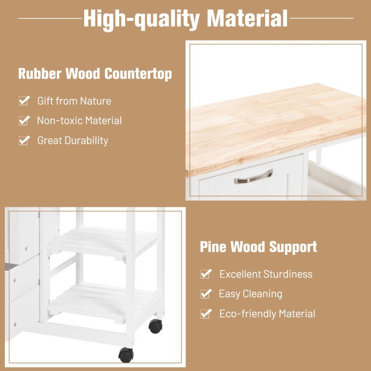 ● Selected Materials: Constructed by rubber wood countertop, pine wood legs and P2 grade MDF, this kitchen cart ensures good sturdiness and durability to have a strong load-bearing capacity. Besides, NC painting is environmentally friendly and odorless for safe use.