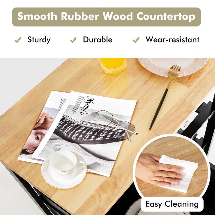 ● Selected Materials: Constructed by rubber wood countertop, pine wood legs and P2 grade MDF, this kitchen cart ensures good sturdiness and durability to have a strong load-bearing capacity. Besides, NC painting is environmentally friendly and odorless for safe use.