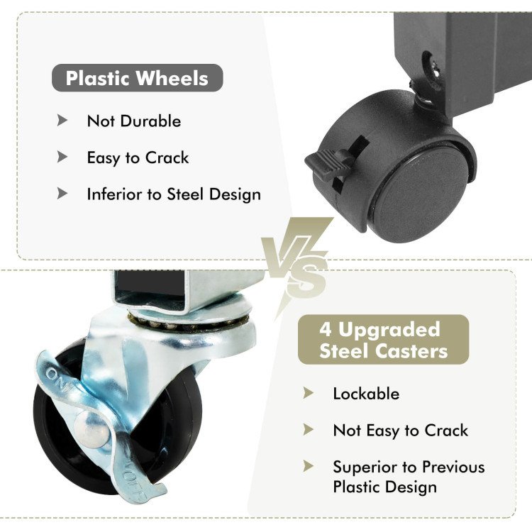 ● 360° Swivel Casters for Free Mobility: Equipped with 4 universal wheels, the kitchen island cart can be easily pushed to anywhere you want. Besides, 2 of them are lockable with brakes so that you can keep the cart in position, ensuring great security and convenience.
