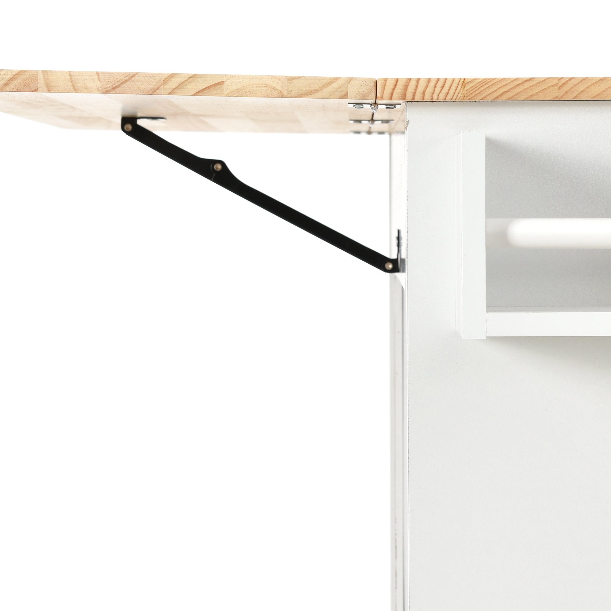 - [DROP LEAF BREAKFAST BAR] The drop leaf breakfast bar offers an additional work surface and can be easily folded down when not in use.