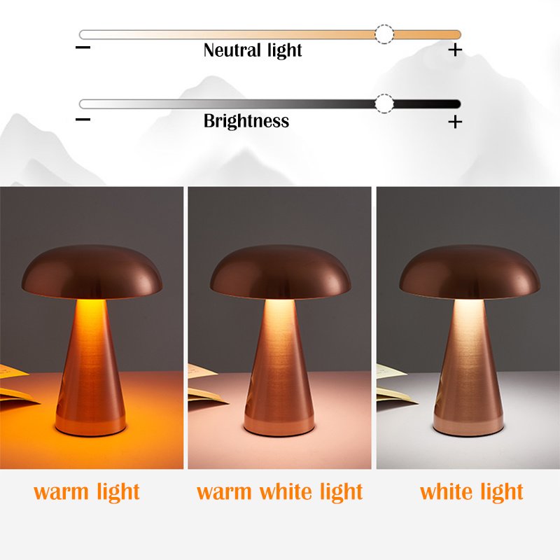 LED Rechargeable Metal Mushroom Touch Dimmable Table Lamp