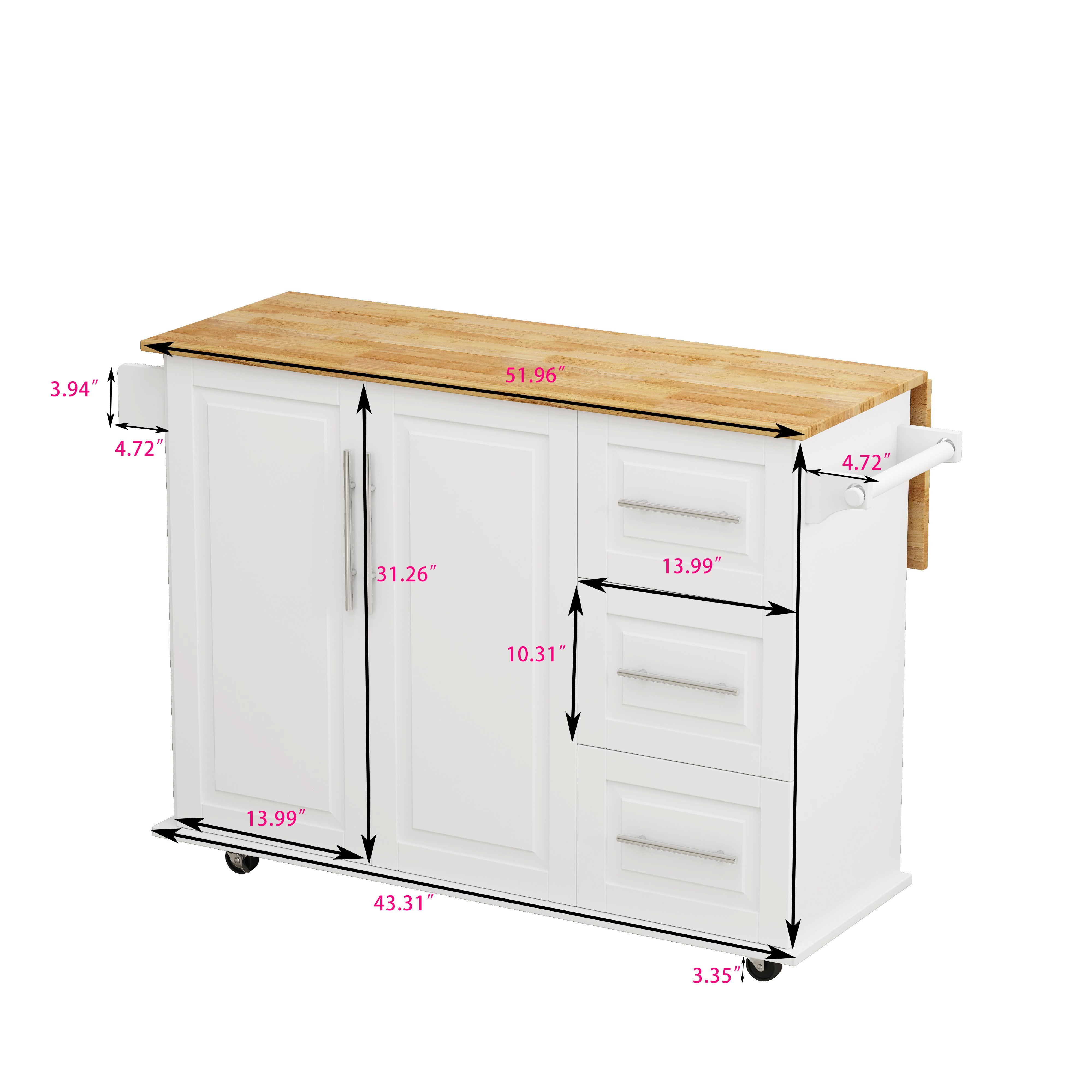 Home > Kitchen Island Cart with 2 Door Cabinet and Three Drawers,43.31 Inch Width with Spice Rack,Towel Rack