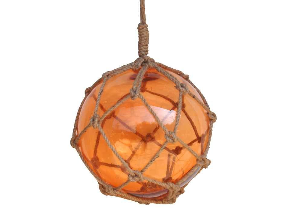 This Amber Japanese Glass Ball Fishing Float With Brown Netting Decoration 12" is a perfect piece of beach wall art. Gorgeous whether in your home or office, enjoy the charming inner warmth of this buoy float as lights play through the amber glass ball. Perfectly contrasting the glass float is the authentic fishing rope netting which holds the float in place. Mesmerizing and enchanting, enjoy the historic wonder and brilliant style of this nautical glass float each and every day.