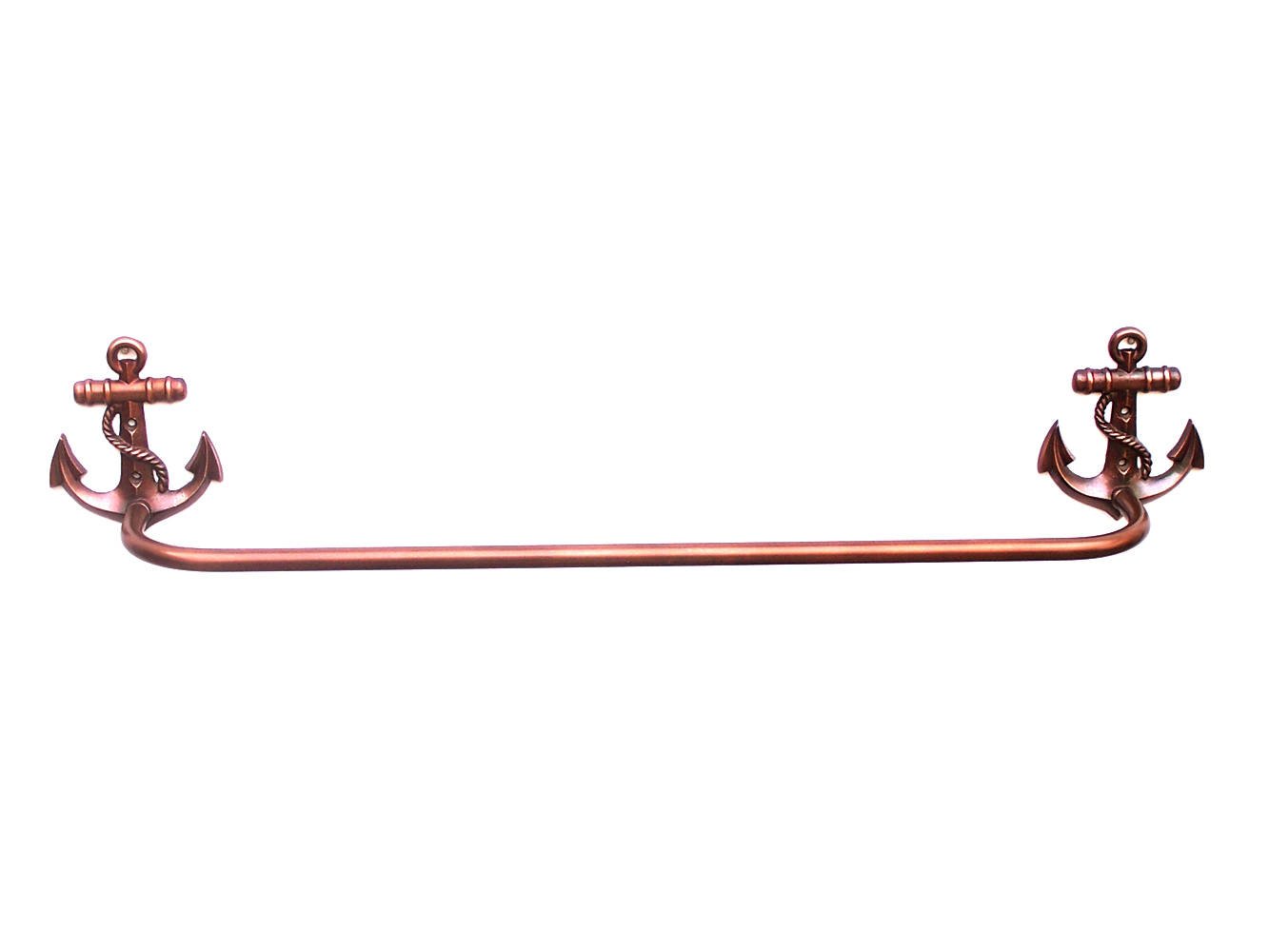 This Antique Copper Anchor Bath Towel Holder 28" is perfect for any nautical inspired bathroom. It adds charm to any nautical room, while impressing your guests with their substance and thoughtfulness. Ideal for hanging bath towels, this durable towel holder 28" is crafted from antique copper. This Towel Holder comes in your choice of finishes so you can compliment the look of any bath. Easily mountable, display this decorative holder to show those who visit your home the affinity for the sea-faring lifestyle.