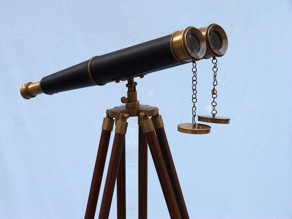 The wooden tripod stand is comes with a smooth rounded finish. Each of the legs comes with solid bronze fittings and a screw release to let you adjust the height. A solid bronze chain holds the three stands together so the binoculars hold their position.