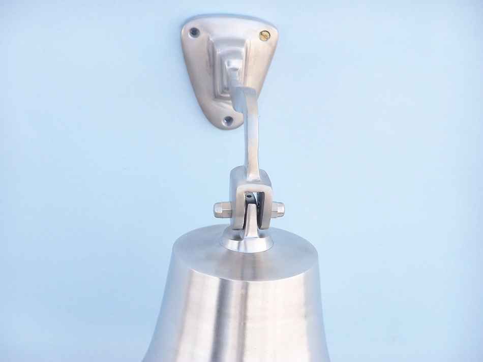 This brushed nickel ship’s bell imparts a distinctive maritime feeling wherever it resides, whether hung outside as a functional bell or used as a décor item in a nautical themed room. This ship’s bell sounds as beautiful as it looks, and comes complete with a braided rope striking lanyard. For your satisfaction we offer a 100% money back guarantee, no hassle returns, in-store pickup, and professional packaging and inspections on all shipped items.