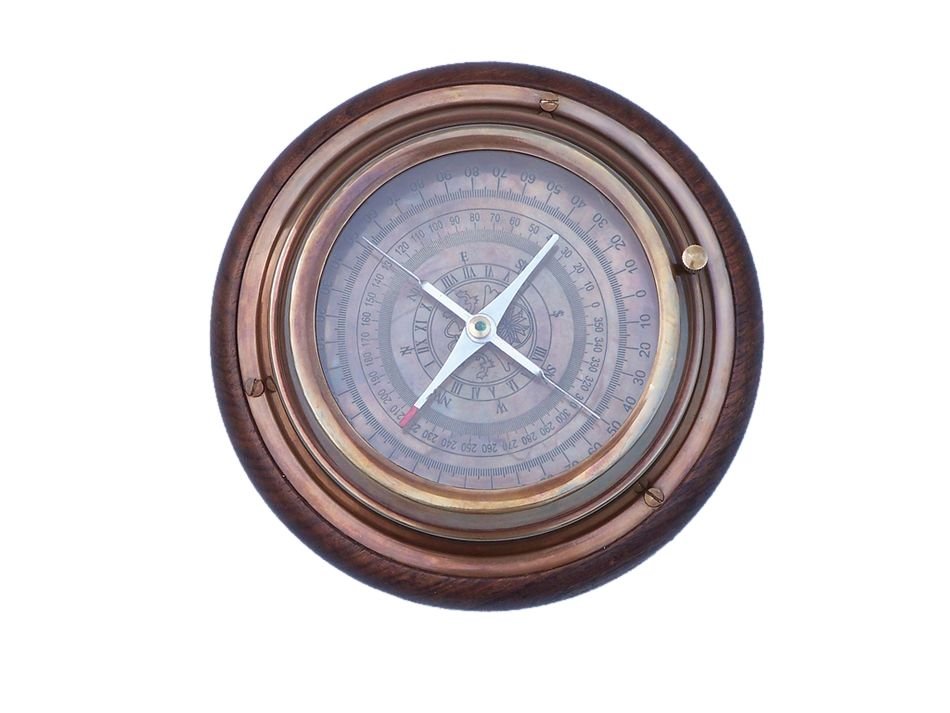 The Hampton Nautical Directional Desk Compass is a solid brass with an antique finish distressed reproduction of an antique air-damped compass. The compass needle has long, balanced air paddles mounted perpendicular to the needle to allow stable readings. There is a needle lift thumbscrew to secure the compass needle while in transport. This compass makes a perfect desk accessory for the distinguished office.