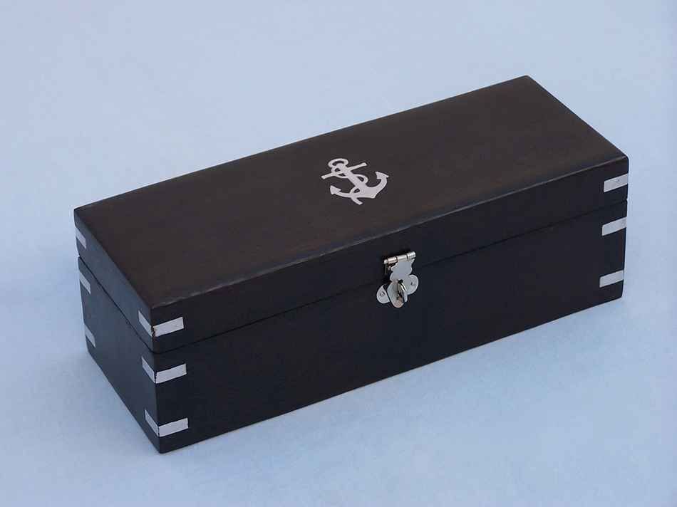 • Solid rosewood box adorned with brass anchor emblem