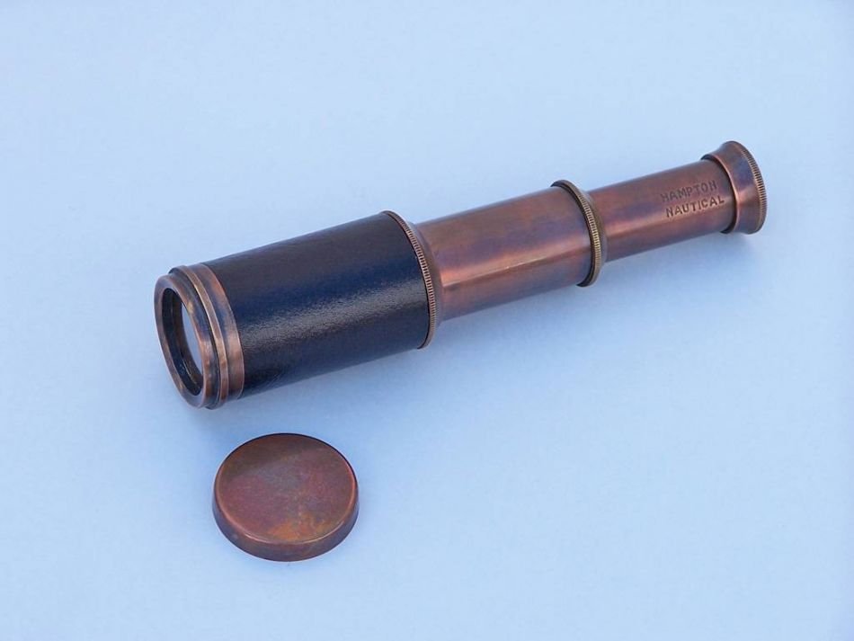 The Hampton Nautical 7” Antique Brass Spyglass is a great gift for the young nautical explorer in your life. This small antique brass spyglass is pocket sized, at 3.5" when collapsed and 7" when fully expanded. The handle of this spyglass is antique brass and comes with an antique brass cap to protect the lens. Simply adjust telescope length from lens to eyepiece to bring the image into clear focus.