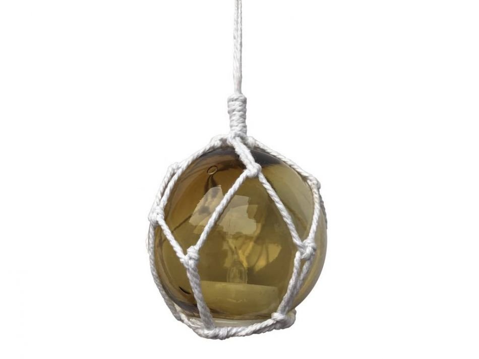 This “LED Lighted Amber Japanese Glass Ball Fishing Float with White Netting Christmas Tree Ornament 3" is a perfect tree ornament to any nautical or beach themed Christmas tree.  Enjoy the charming inner warmth of this nautical glass float as the flameless LED tea light inside plays throughout the amber glass ball.  Perfectly contrasting the glass float is the authentic fishing rope netting which holds the float in place. Mesmerizing and enchanting, enjoy the historic wonder and brilliant style of this LED lighted nautical glass float ornament on your Christmas tree.