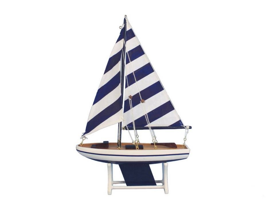 Our new It Floats - Blue Striped 12" model salboat is freshly designed with increased craftsmanship and is our debut float alone sailboat. Available in 14 different styles/colors, this sailboat can be taken into the water and enjoyed by anyone. Included with your purchase is a wooden base to prominently display the model after use. These sleek and elegant wooden model sailboats have seen careful attention paid to every detail. Bring a winning spirit and nautical flair to the décor of any room with the clean lines and graceful features of these model sailing boats. Attaching sails is a simple process typically taking no more than 2 minutes.