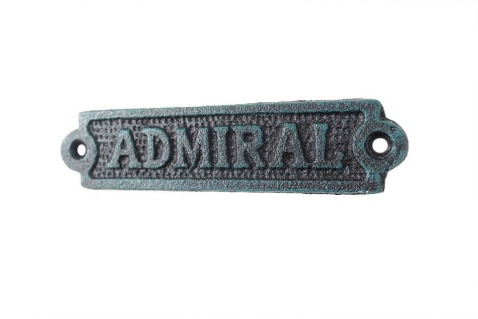 Ideal for posting on a boat, in a boathouse, or any nautical themed room, this Cast Iron Admiral Sign 6" clearly gets its point across. With a textured, rustic framing and body, this distinctive sign allows for easy decorative mounting. Display this decorative piece on your boat or in your home and show your affinity for the sea-faring lifestyle to those who visit.