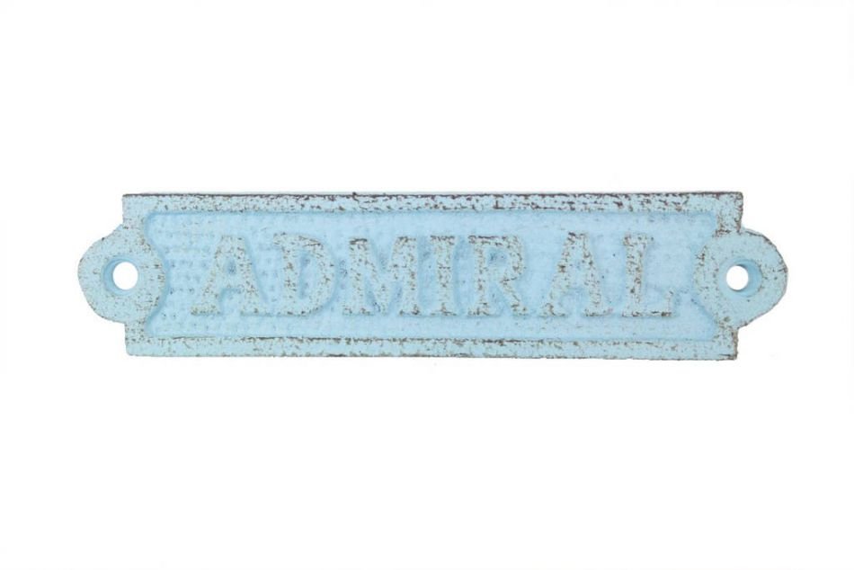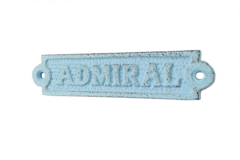 Ideal for posting on a boat, in a boathouse, or any nautical themed room, this Cast Iron Admiral Sign 6" clearly gets its point across. With a textured, rustic framing and body, this distinctive sign allows for easy decorative mounting. Display this decorative piece on your boat or in your home and show your affinity for the sea-faring lifestyle to those who visit.