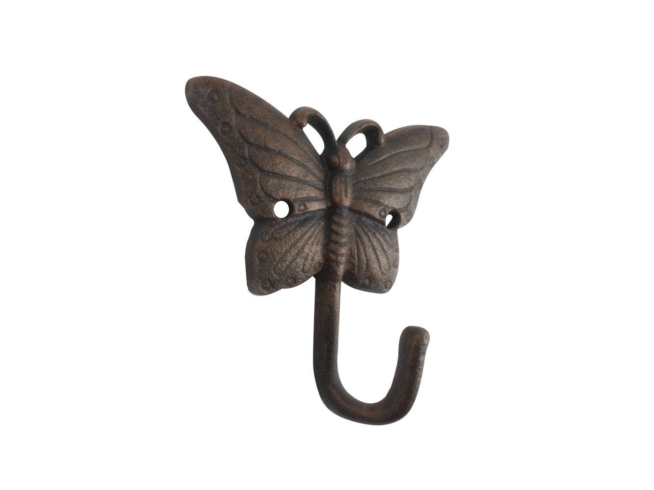 This Antique Seaworn Bronze Cast Iron Butterfly Hook 6" is the perfect addition to any magical fantasy themed home. Ideal for hanging clothes and accessories, this durable butterfly hook 6" is handcrafted from cast iron. Easily mountable, display this decorative hook to show those who visit your home your affinity for the magical fantasy lifestyle.