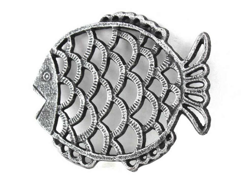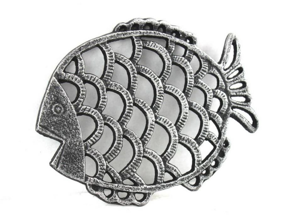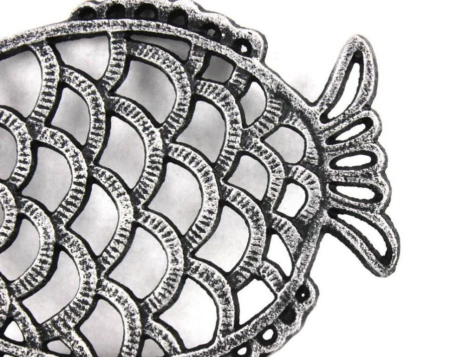 This Antique Seaworn Bronze Cast Iron Big Fish Trivet 8" is a fun fish trivet that brings the beach directly to any kitchen setting. Handcrafted by our master artisans, this trivet is the ideal piece for nautical enthusiasts and beach-lovers alike. Available in different styles, let the beach come to you.