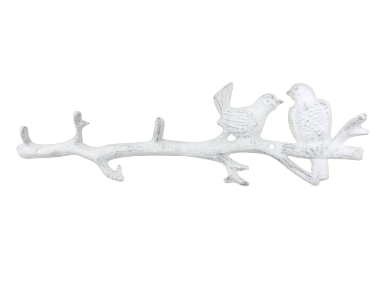 This Cast Iron Love Birds on Tree Branch Decorative Metal Wall Hooks 19" is the perfect addition to any country living home. Ideal for hanging clothes and accessories, this forest theme home decor durable bird hook is handcrafted from cast iron. Easily mountable, display this decorative hook to show those who visit your home your affinity for birds.