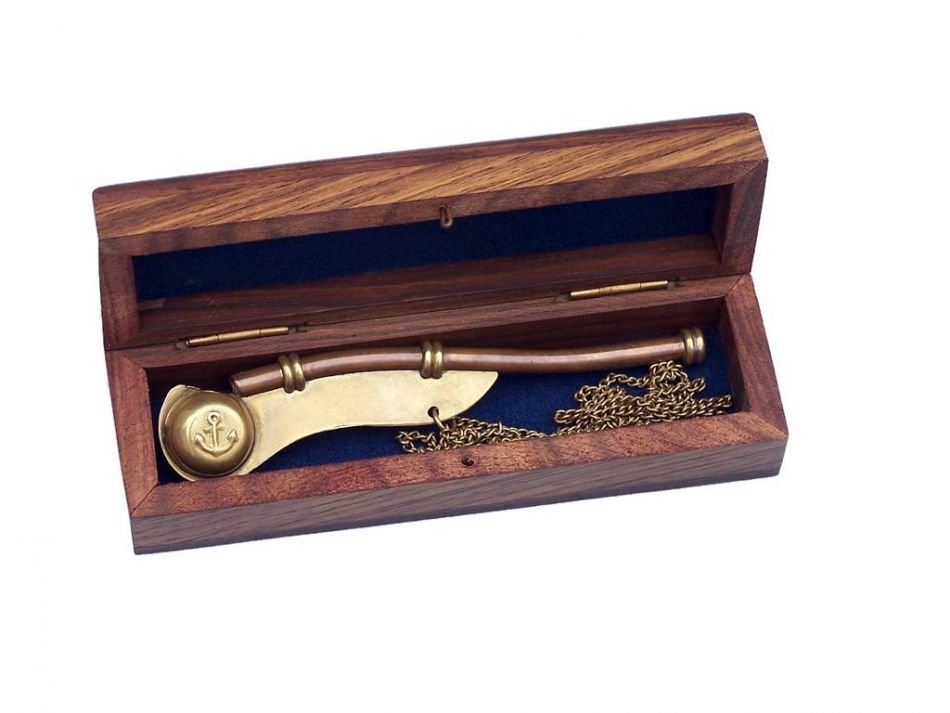The boatswain's pipe comes with a beautiful solid hardwood felt lined storage and display case.