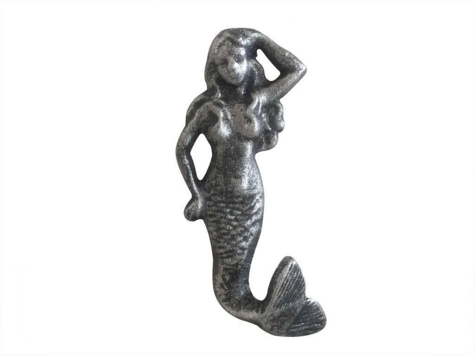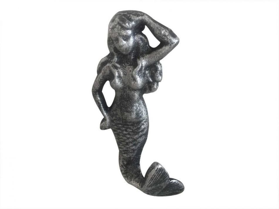 This Antique Bronze Cast Iron Mermaid Hook 6" is the perfect addition for any nautical themed home. Handcrafted from cast iron, this bronze hook allows for easy decorative mounting, ideal for hanging clothes and accessories. Display this decorative hook to add a nautical theme to any room and show those who visit your home your affinity for the nautical sea-faring lifestyle.