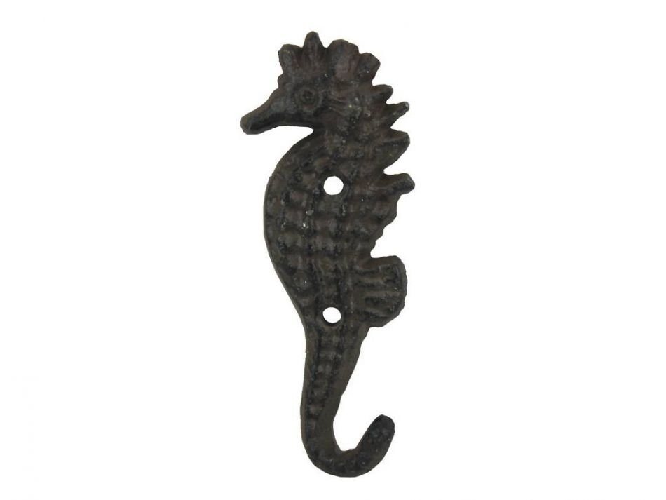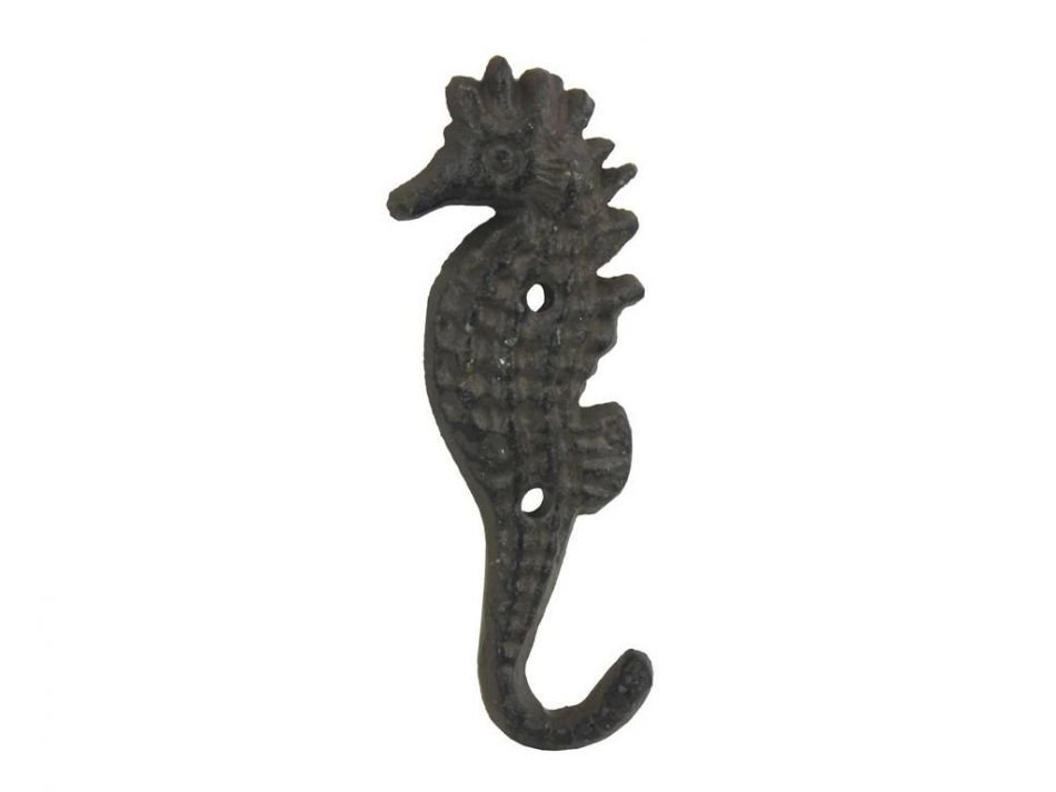 This Antique Bronze Cast Iron Seahorse Hook 5" is the perfect addition for any nautical themed home. Handcrafted from cast iron, this bronze hook allows for easy decorative mounting, ideal for hanging clothes and accessories. Display this decorative hook to add a nautical theme to any room and show those who visit your home your affinity for the nautical sea-faring lifestyle.
