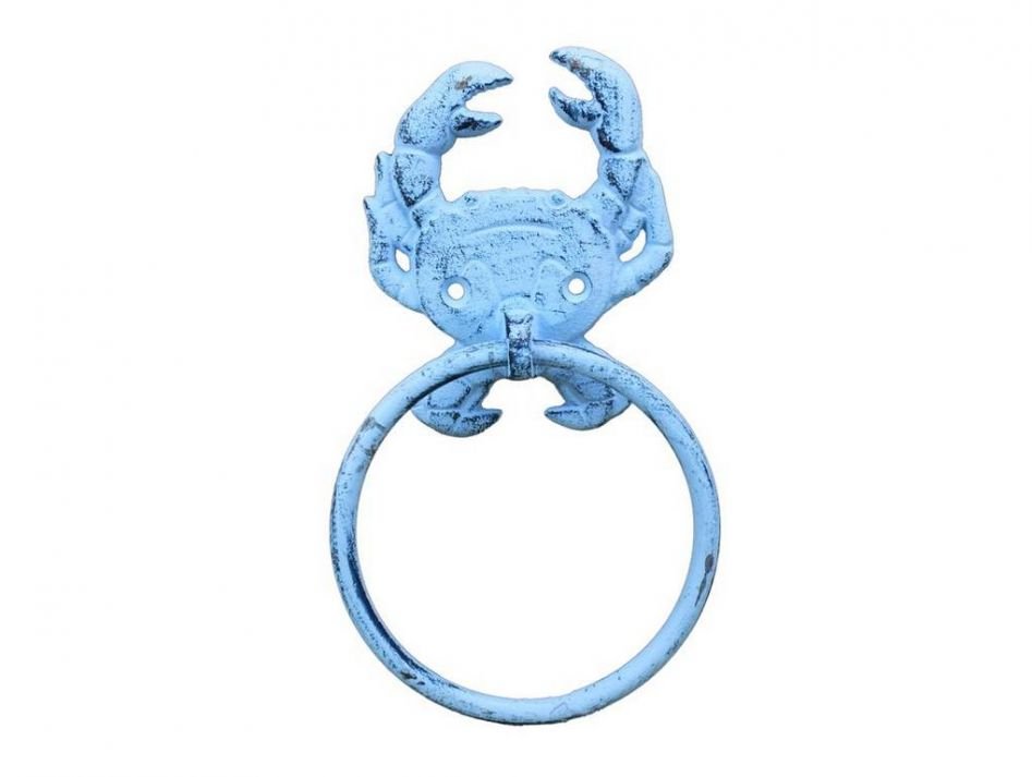 This Dark Blue Whitewashed Cast Iron Crab Towel Holder 8" is perfect for any nautical inspired bathroom or kitchen. It adds charm to any nautical room, while impressing your guests with their substance and thoughtfulness. Ideal for hanging towels, this durable towel holder 8" is crafted from cast iron. Easily mountable, display this decorative holder to show those who visit your home the affinity for the sea-faring lifestyle.