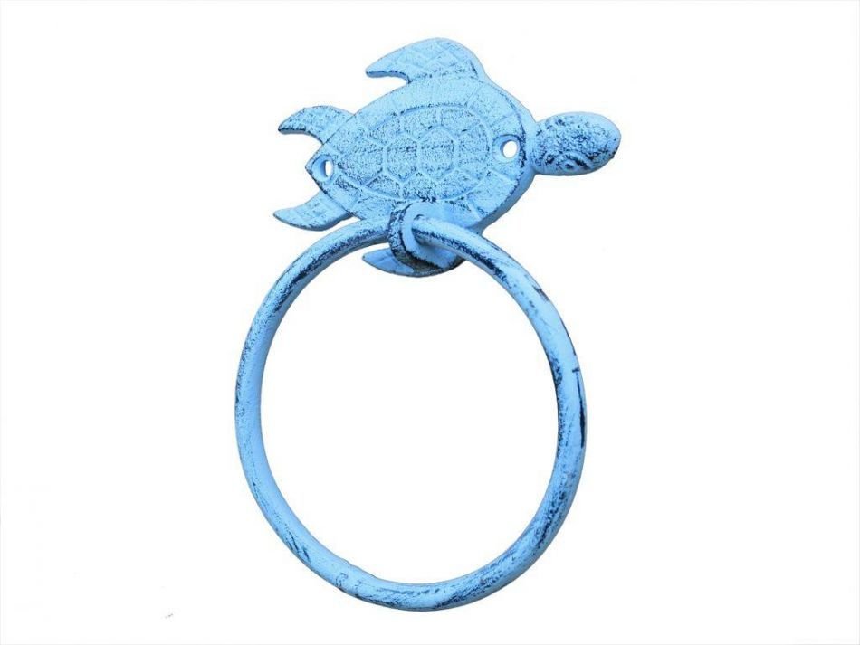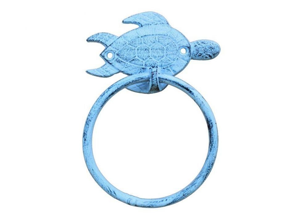 This Antique Bronze Cast Iron Sea Turtle Towel Holder 7" is perfect for any nautical inspired bathroom or kitchen. It adds charm to any nautical room, while impressing your guests with their substance and thoughtfulness. Ideal for hanging towels, this durable towel holder 7" is crafted from cast iron. Easily mountable, display this decorative holder to show those who visit your home the affinity for the sea-faring lifestyle.