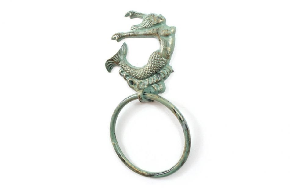 This Antique Seaworn Bronze Cast Iron Arching Mermaid Towel Holder 9" is perfect for any sea life inspired bathroom or kitchen. It adds charm to any nautical room, while impressing your guests with their substance and thoughtfulness. Ideal for hanging towels, this durable towel holder 9" is crafted from cast iron. Easily mountable, display this decorative holder to show those who visit your home the affinity for the sea-faring lifestyle.