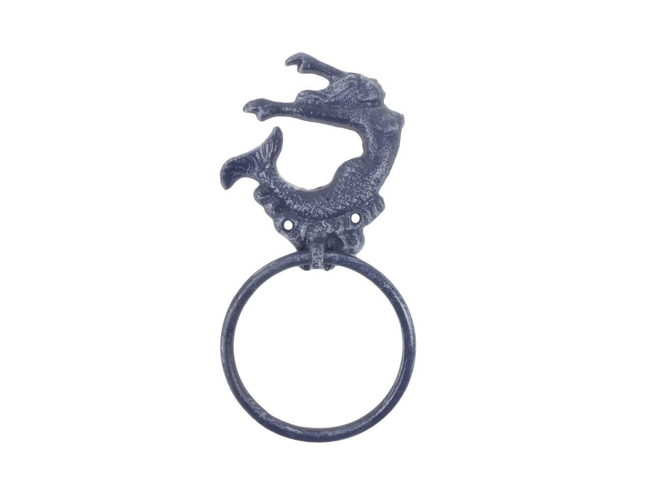 This Antique Seaworn Bronze Cast Iron Arching Mermaid Towel Holder 9" is perfect for any sea life inspired bathroom or kitchen. It adds charm to any nautical room, while impressing your guests with their substance and thoughtfulness. Ideal for hanging towels, this durable towel holder 9" is crafted from cast iron. Easily mountable, display this decorative holder to show those who visit your home the affinity for the sea-faring lifestyle.