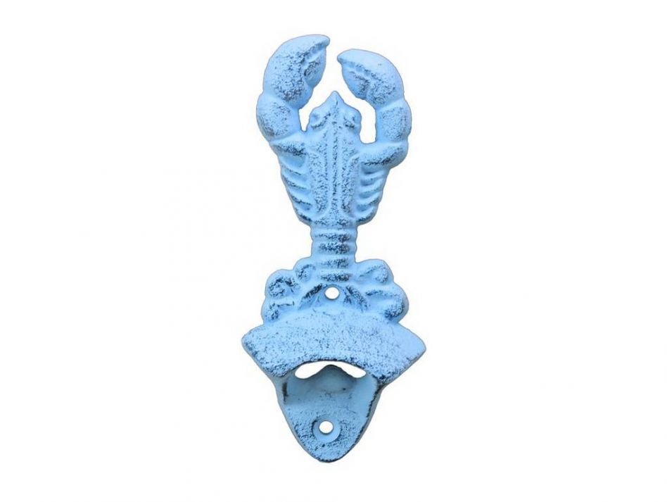 The Cast Iron Wall Mounted Lobster Bottle Opener 6" perfectly accents any nautical themed kitchen or bar. Crafted from cast iron finish, this heavy bottle opener will open even the most difficult of bottles with ease.