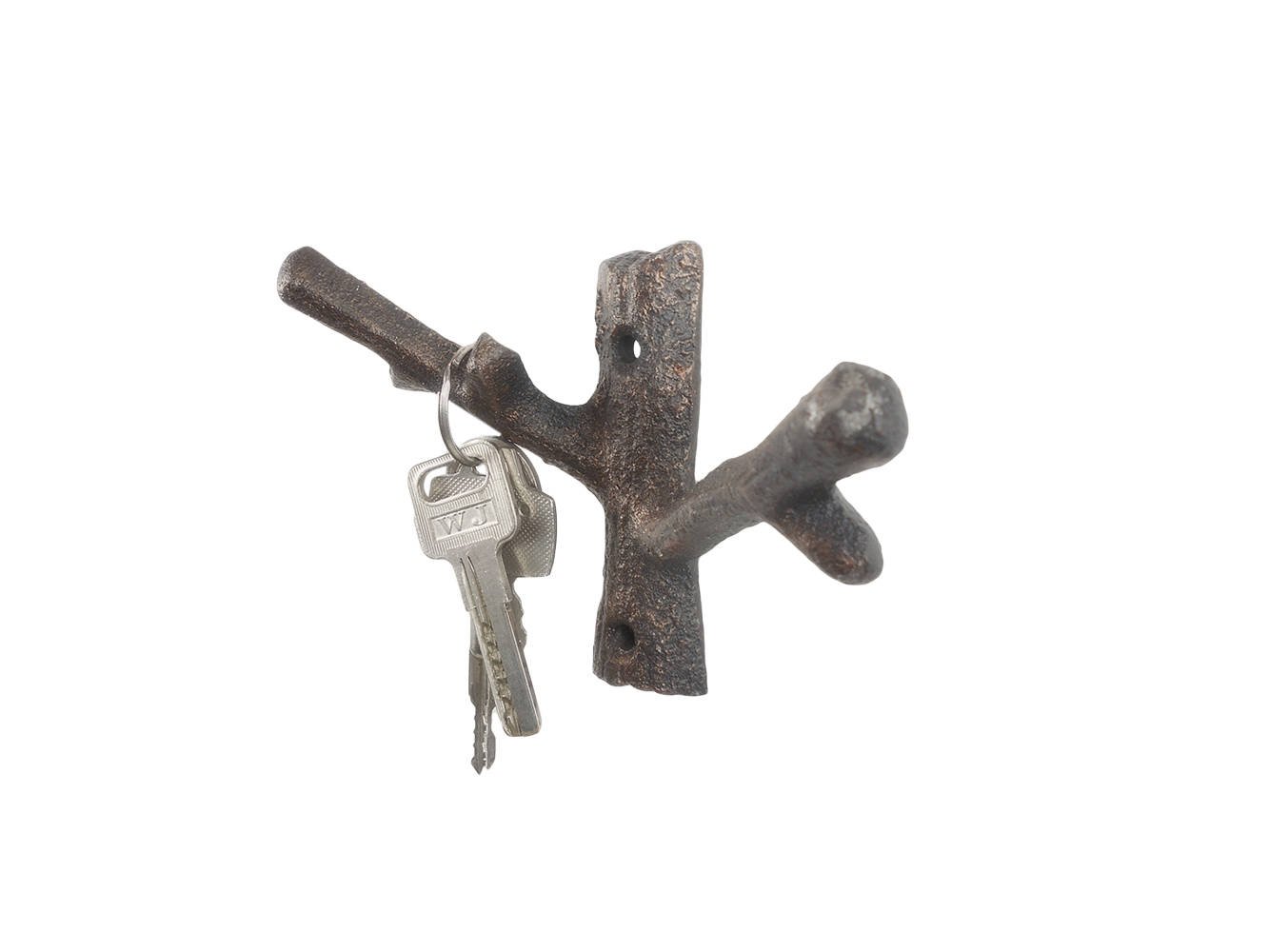 Cast Iron Forked Tree Branch Decorative Metal Double Wall Hooks 5"