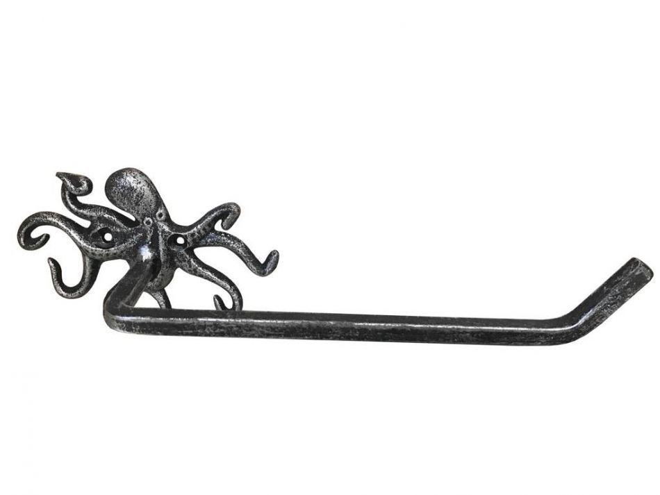 This Cast Iron Octopus Hand Towel Holder 11" is perfect for any beach inspired bathroom or kitchen. It adds charm to any beach room, while impressing your guests with their substance and thoughtfulness. Ideal for hanginghand towels, this durable hand towel holder 11" is crafted from cast iron. Easily mountable, display this decorative holder to show those who visit your home the affinity for the sea-faring lifestyle.
