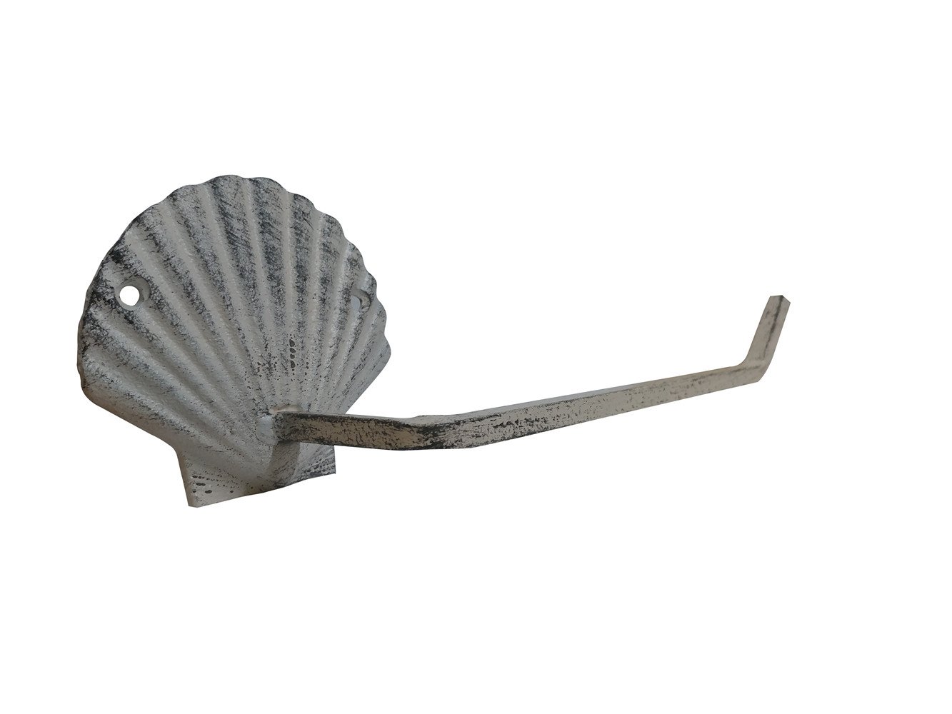 This Aged White Cast Iron Shell Toilet Paper Holder 10" is perfect for any beach inspired bathroom. It adds charm to any bathroom, while impressing your guests with their substance and thoughtfulness. Ideal for hanging toilet paper, this durable toilet paper holder 10" is crafted from cast iron. Easily mountable, display this decorative holder to show those who visit your home your affinity for the sea-faring lifestyle.