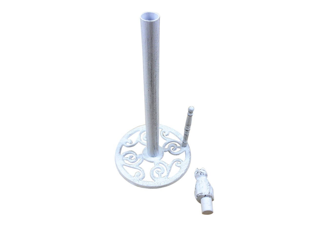 This Rustic Silver Cast Iron Sitting Cat Kitchen Paper Towel Holder 16" is perfect for any cat inspired kitchen. It adds charm to any small or big kitchen.It will impress your guests with rustic country living decor. Ideal for paper towels, this durable towel holder 16" is crafted from cast iron. Easily mountable, display this decorative holder to show those who visit your cat decor loving lifestyle.