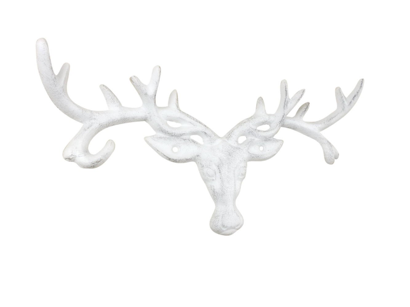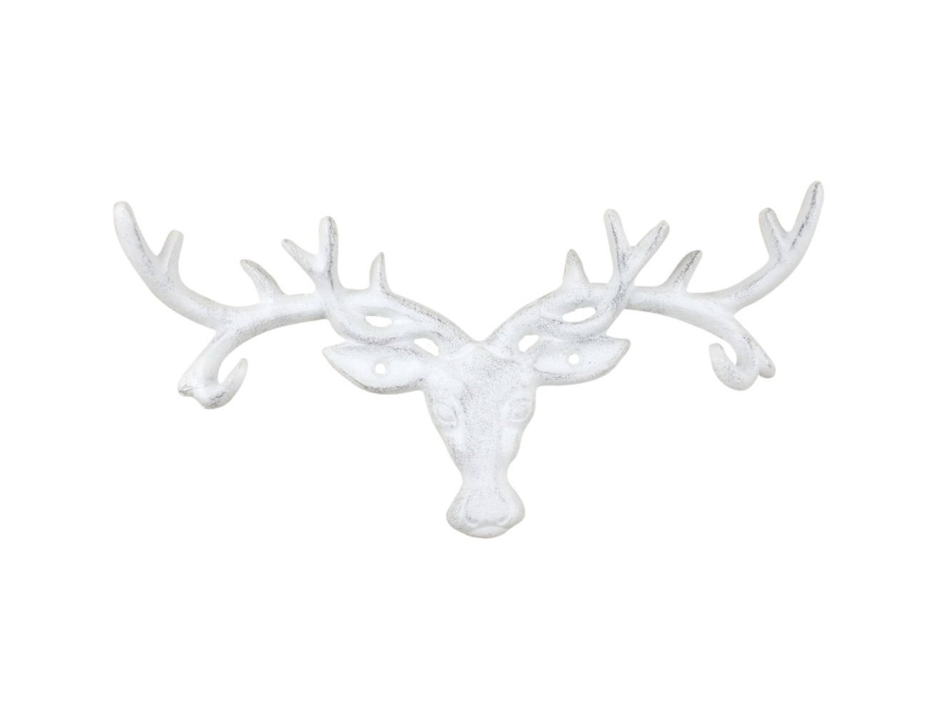 Cast Iron Deer Head Antlers Decorative Metal Wall Hooks 13"