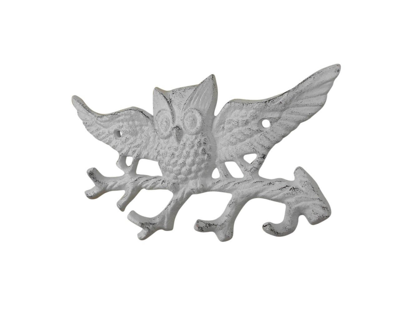Cast Iron Flying Owl Landing on a Tree Branch Decorative Metal Wall Hooks 7.5"