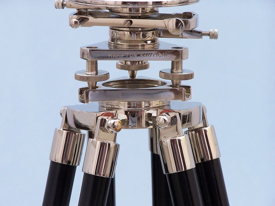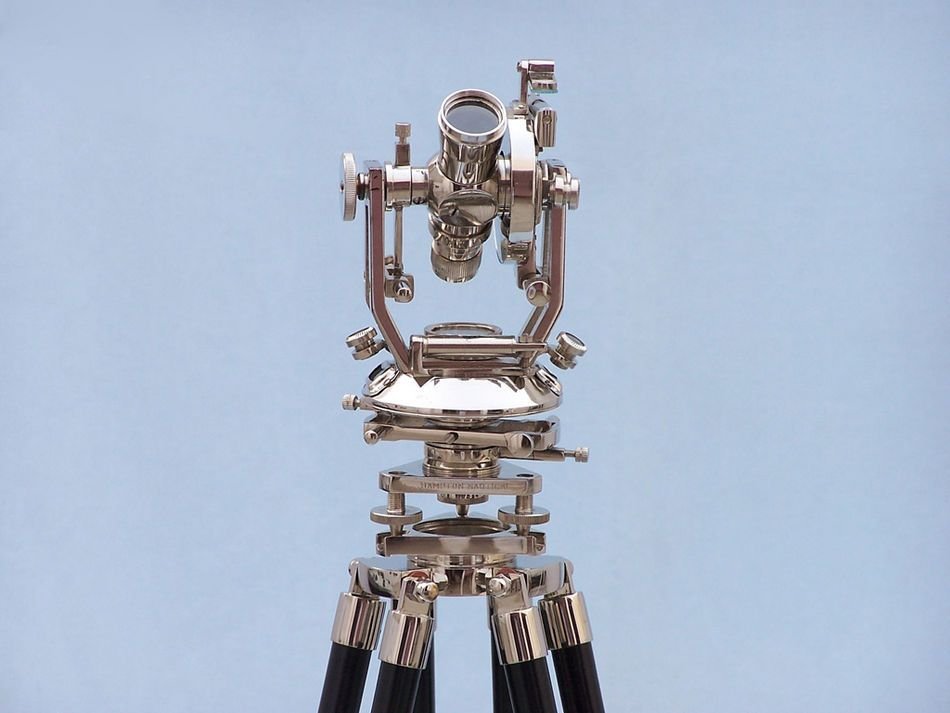 This Hampton Nautical Floor Standing Chrome Theodolite 62" is beautifully detailed, functional, and calibrated. Theodolites are still used today for ultra high precision optical alignment and measurement.